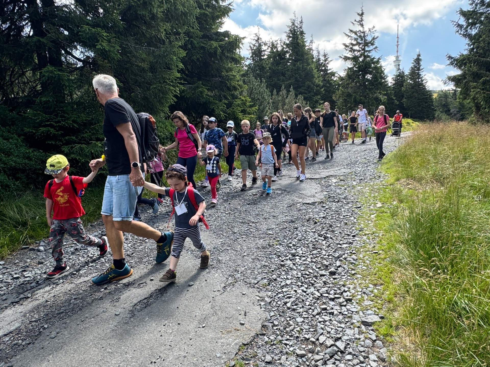 pohybová cvičení s hudbou na zdravém horském vzduchu, děti si tanec